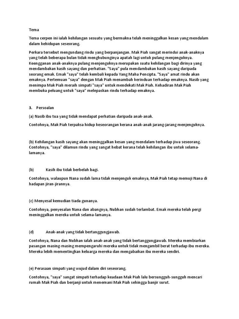 Sinopsis Cerpen Banjir Di Mata Emak Komsas Tingkatan 2