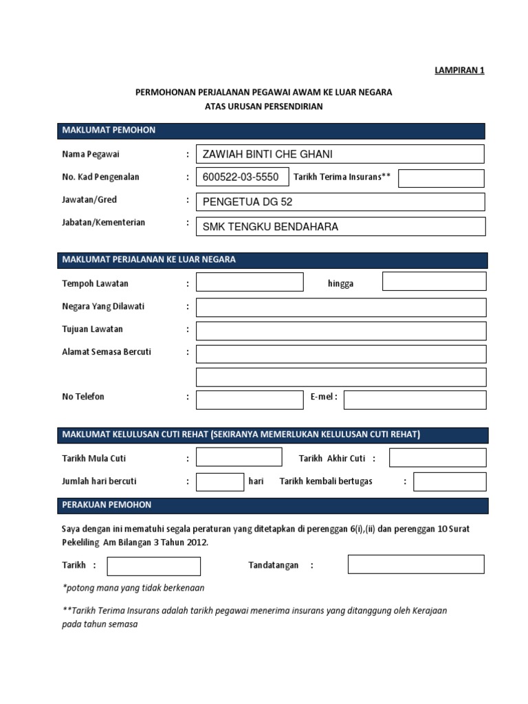 Doc 661739357 Borang Permohonan Perjalanan Ke Luar Negara Lampiran 1 1 Zakwan Wan Academia Edu