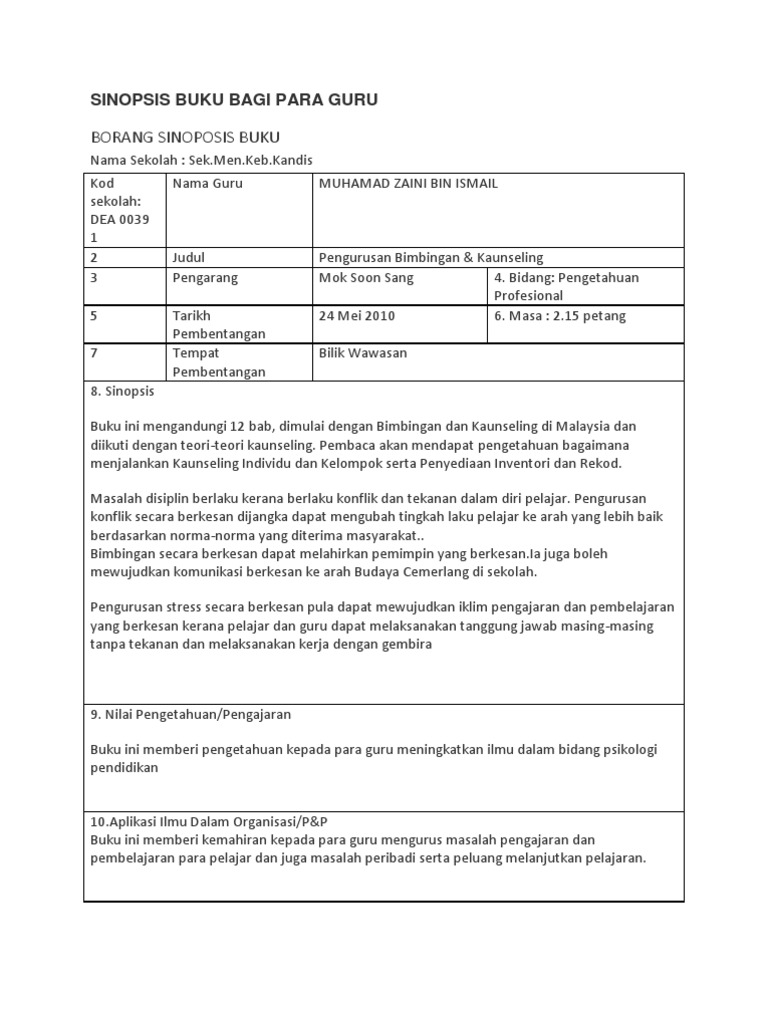 Borang Sinoposis Buku