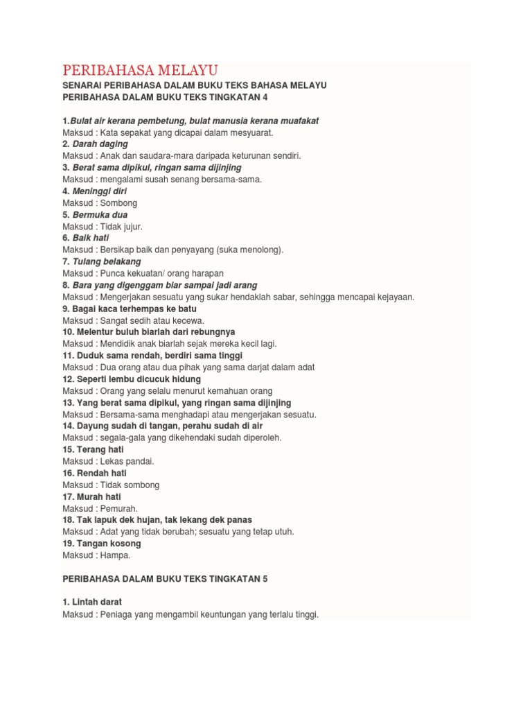 Peribahasa Buku Teks Bahasa Melayu Tingkatan 1 Docx Document