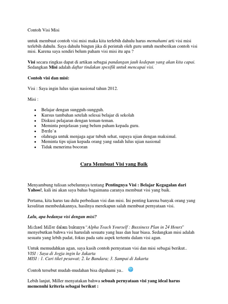 Contoh Visi Misi