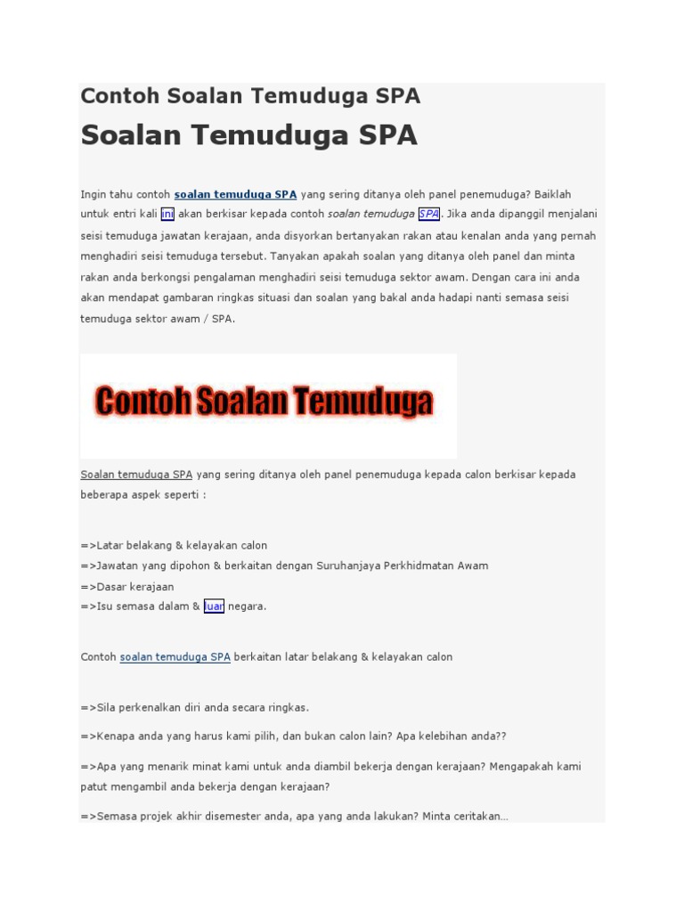 Contoh Soalan Temuduga Spa