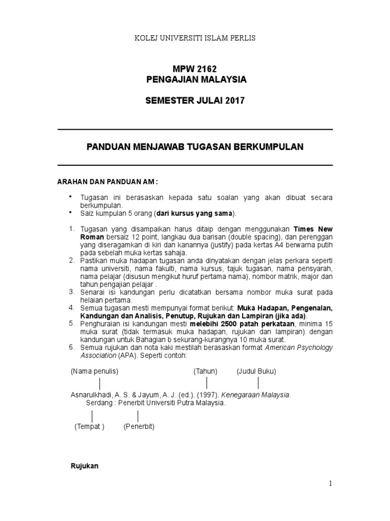 Contoh Assignment Pengajian Malaysia