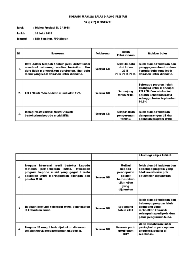 Doc Contoh Maklum Balas Minit Mesyuarat Noryn Samin Academia Edu