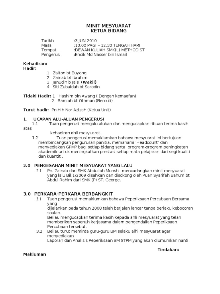 Contoh Format Minit Mesyuarat Stpm
