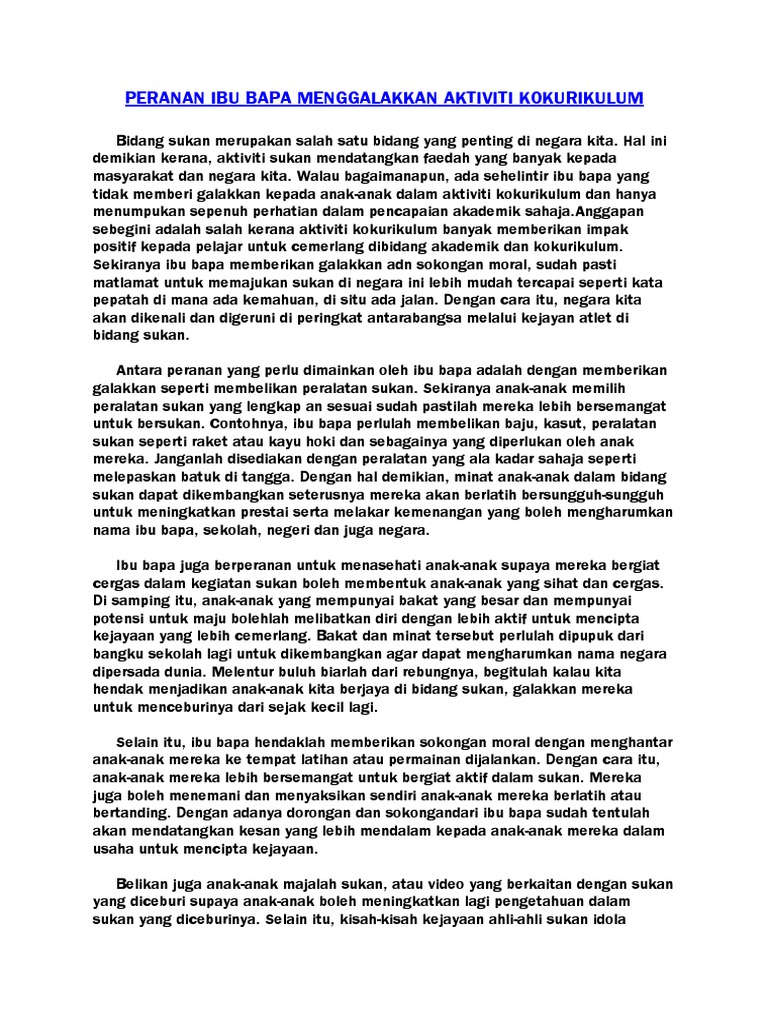 Karangan Peranan Ibu Bapa Menggalakkan Aktiviti Kokurikulum