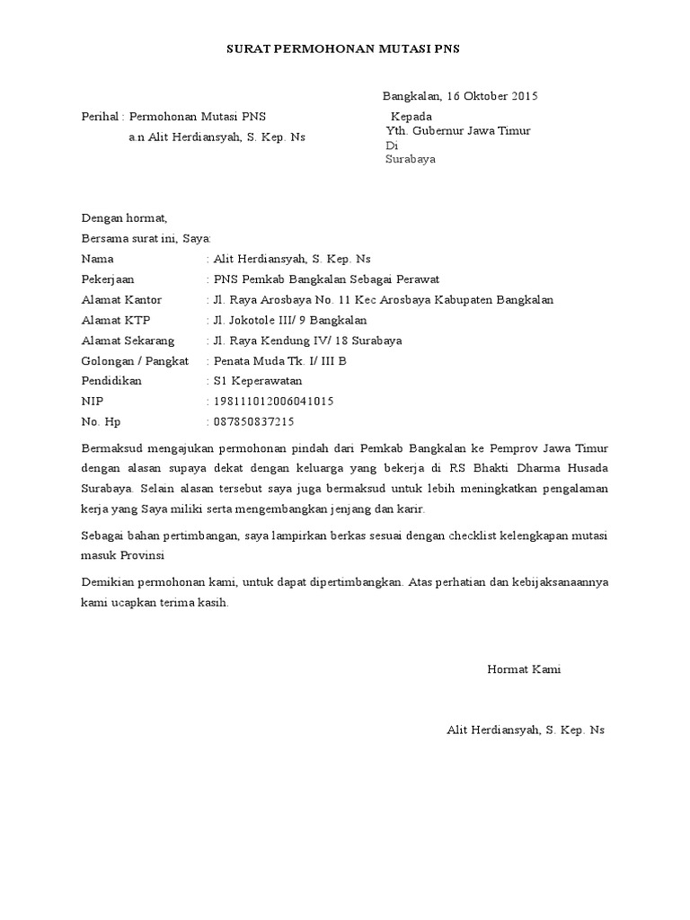 Surat Permohonan Mutasi Pns