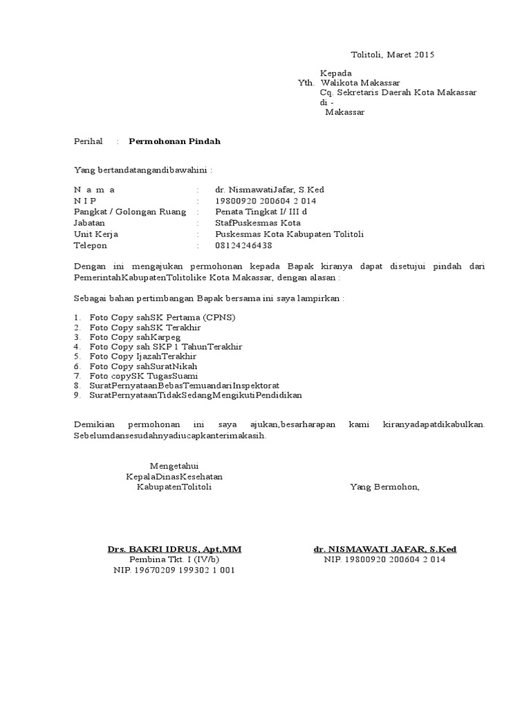 Contoh Surat Permohonan Pindah Tugas Pns Antar Propinsi Contoh Seputar Surat