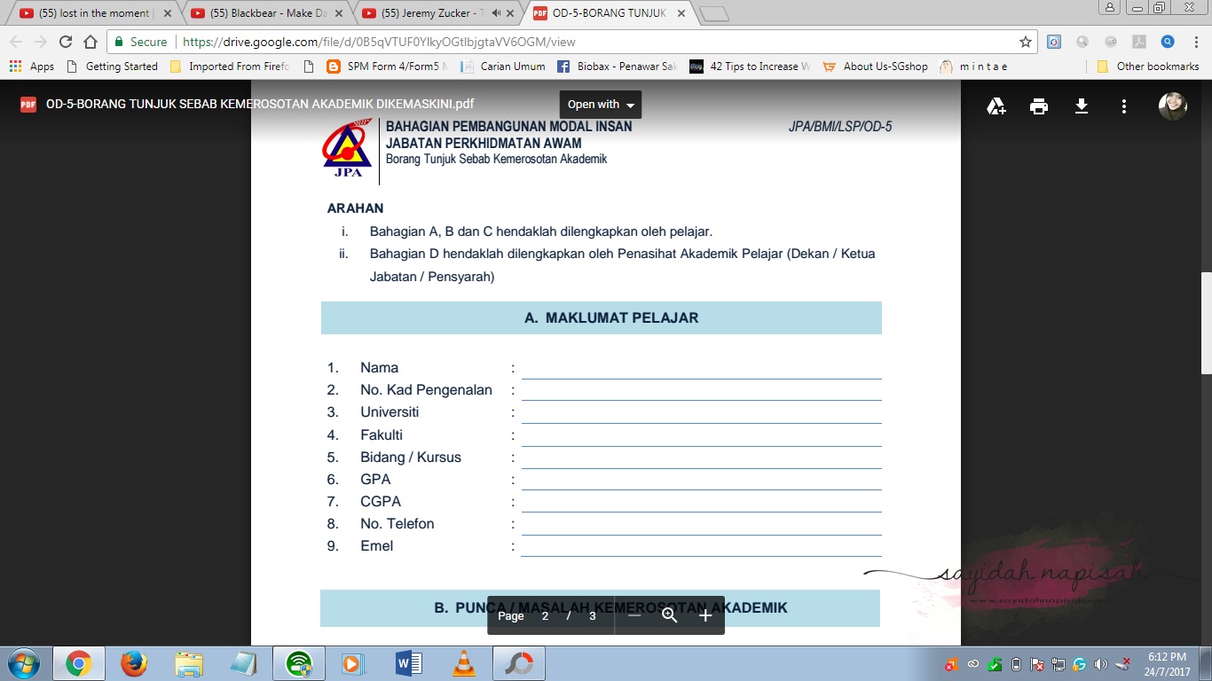 Od 5 Borang Tunjuk Sebab Kemerosotan Akademik Dikemaskini