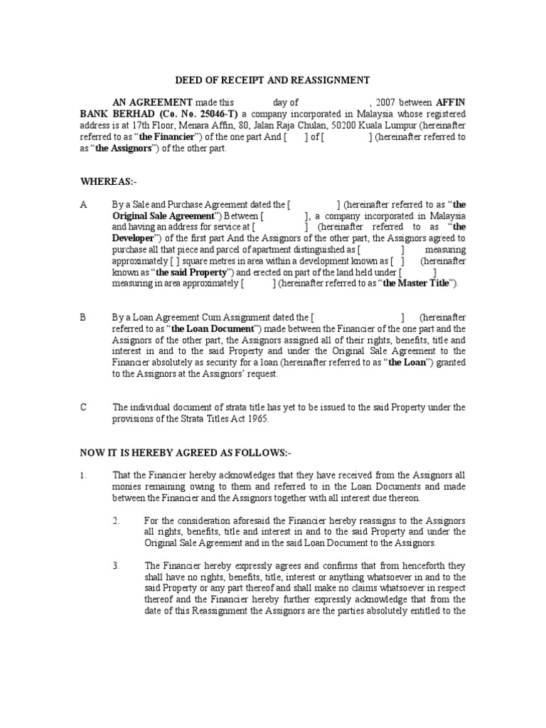 Deed Of Receipt And Reassignment Sample Gofucndowntist Blogcu Com