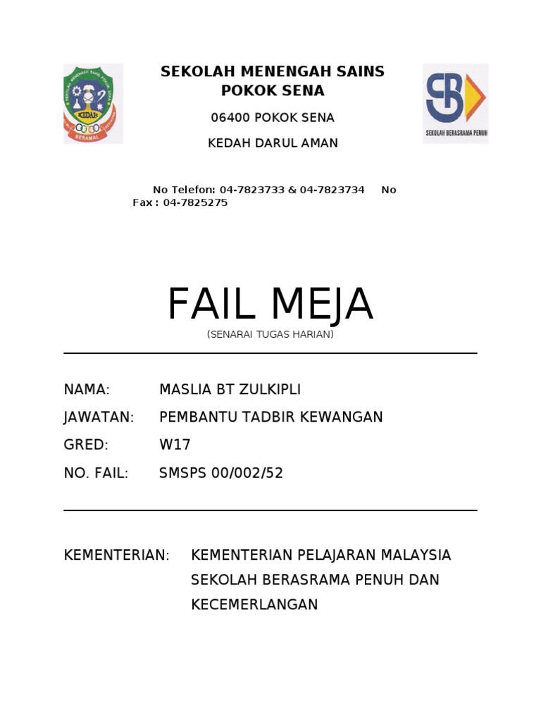 Doc Contoh Fail Meja Mengikut Format Kpm Portal Jpn Perak Nik Kamarul Anuar Abdullah Academia Edu