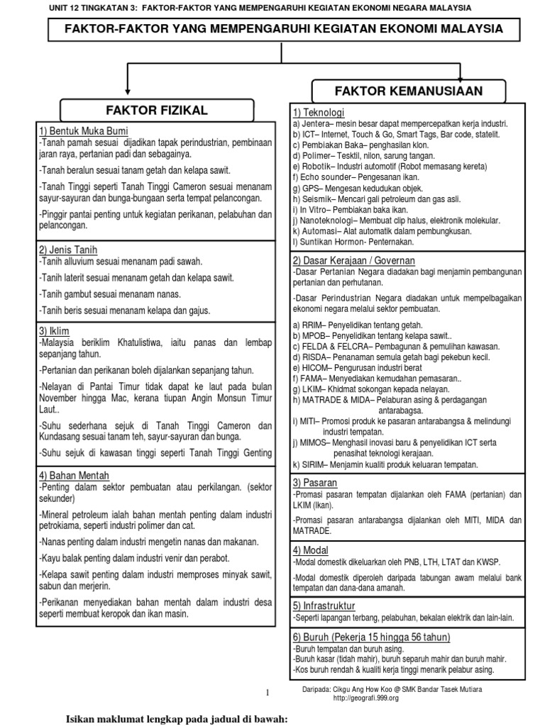 Unit 12 Tingkatan 3 Faktor Faktor Yang Mempengaruhi Kegiatan Ekonomi Negara Malaysia