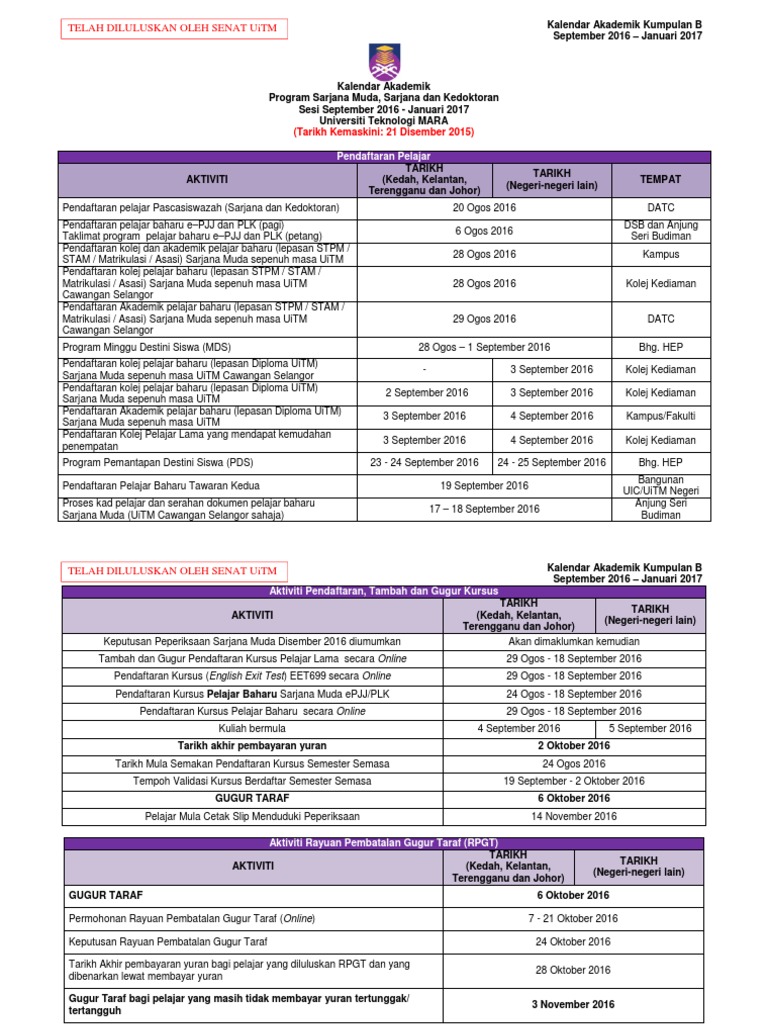 Mpp Uitm Segamat On Twitter Diploma Berikut Ialah Takwim Kalendar Akademik Bagi Pra Diploma Diploma Sarjana Muda Sarjana Kedoktoran September 2017 Januari 2017 Https T Co Vfl1rrw3kx