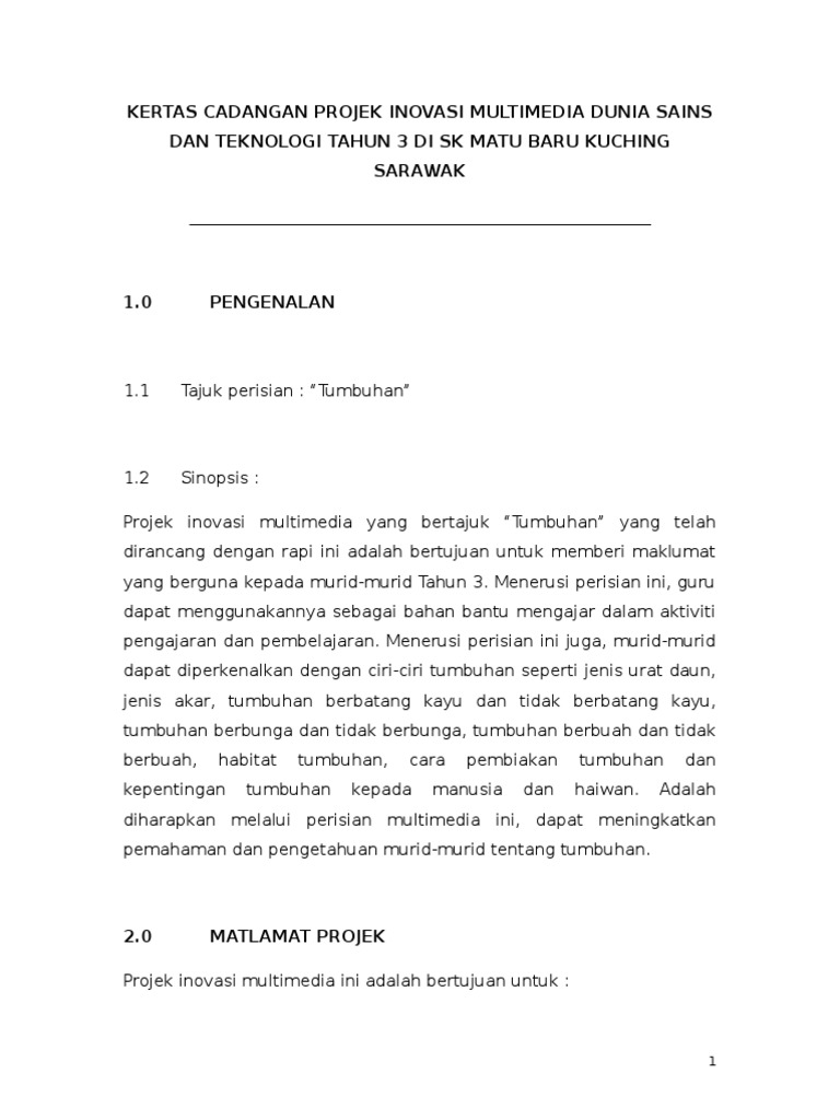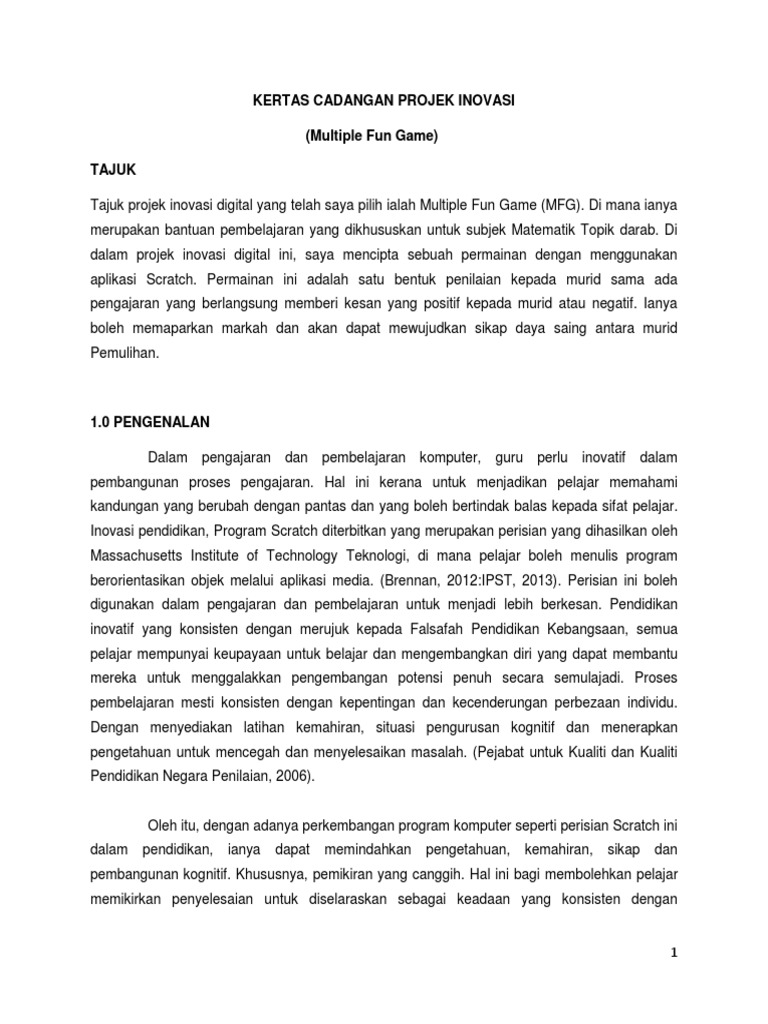 Kertas Cadangan Projek Inovasi Multiple Fun Game Tajuk