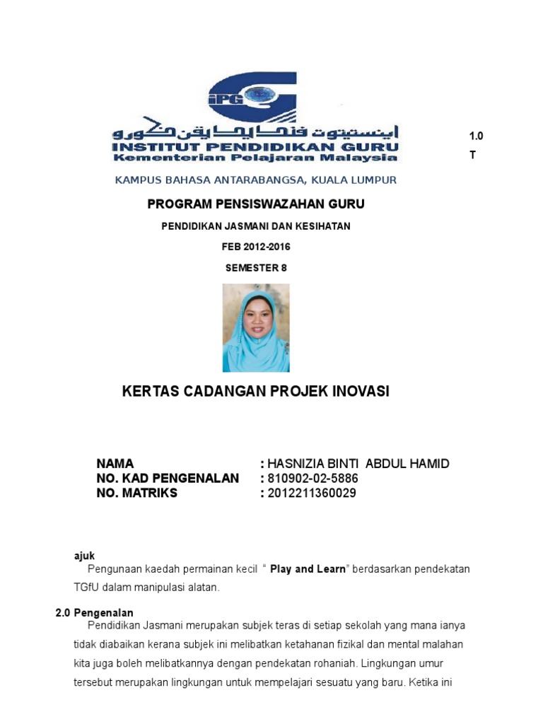 Norain Suhaimi Proposal Inovasi Doc Institut Pendidikan Guru Kampus Tawau Km 36 Jalan Balung Beg Berkunci No 27 91009 Tawau Tugasan 3 Pembentangan Course Hero