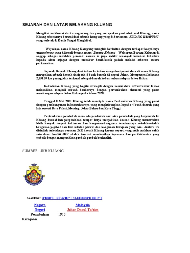Sejarah Dan Latar Belakang Kluang