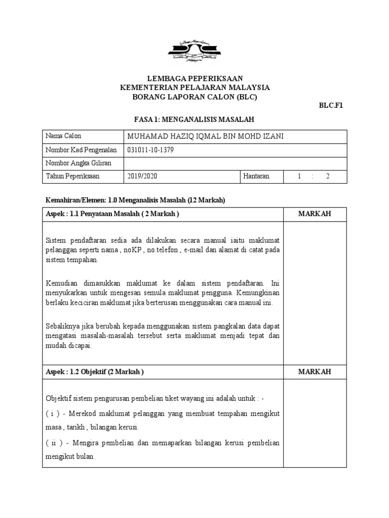 Lembaga Peperiksaan Kementerian Pelajaran Malaysia Borang Laporan Calon Blc