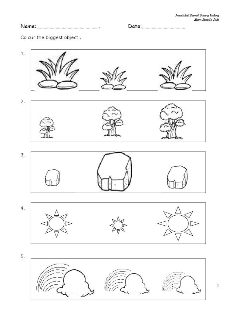 Lembaran Kerja Matematik Saiz Objek Prasekolah Pendidikan Khas Kitpramenulis
