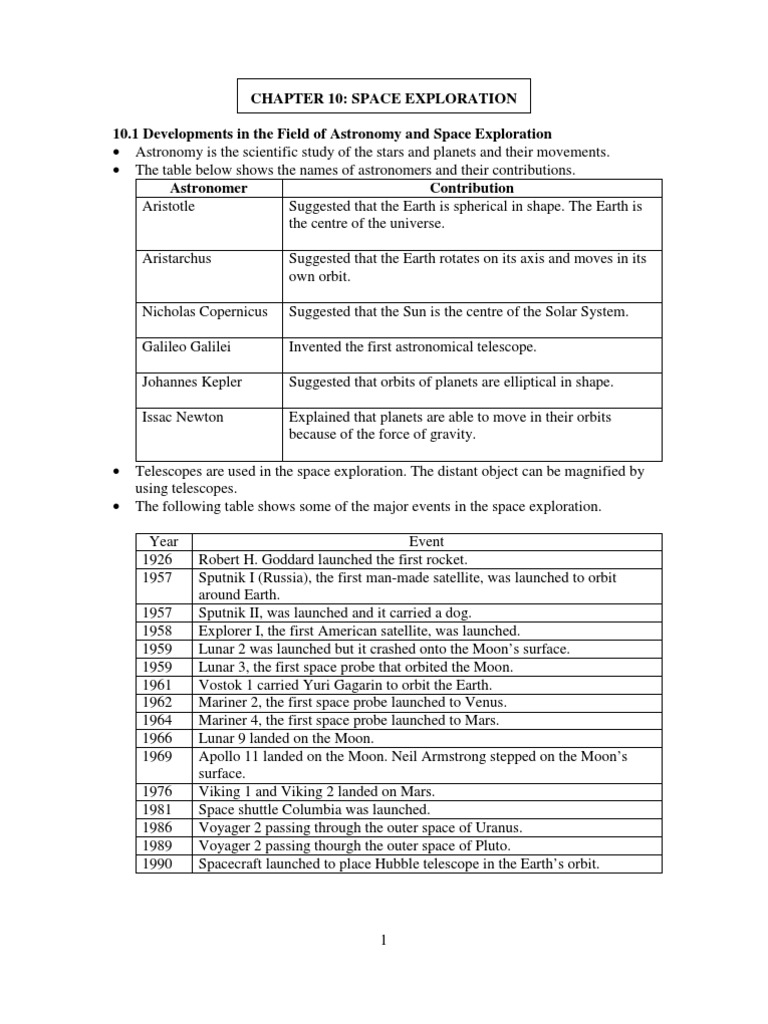 Science Form 3 Chapter 10 Space Exploration Notes
