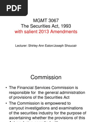 The Securities Act 1993 Ppt Securities Finance Derivative Finance