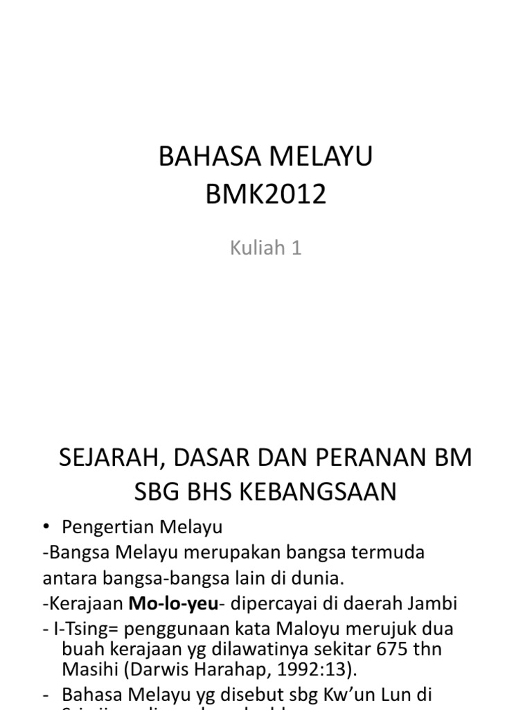 Bahasa Kebangsaan A Mpu 1212 Bab 1 Pengenalan Sejarah Bahasa Melayu