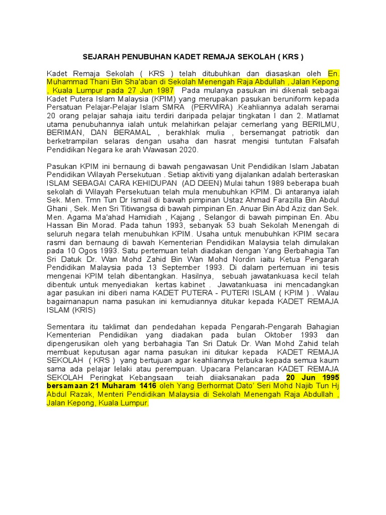 Sejarah Penubuhan Kadet Remaja Sekolah Malaysia Facebook