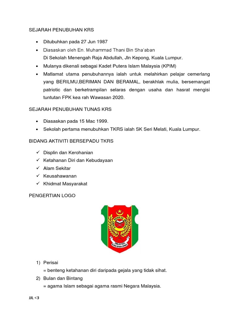 Tunas Kadet Remaja Sekolah Sejarah Penubuhan Tunas Krs