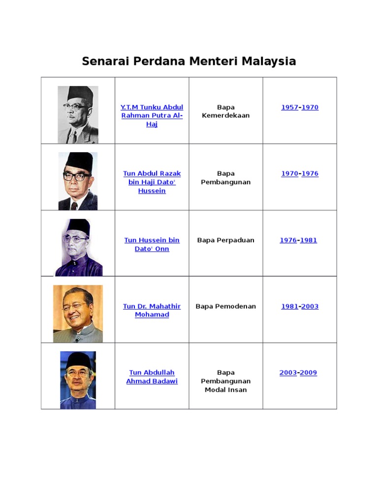 Senarai Perdana Menteri Malaysia Blog Berita Terkini Dari Masa Ke Semasa