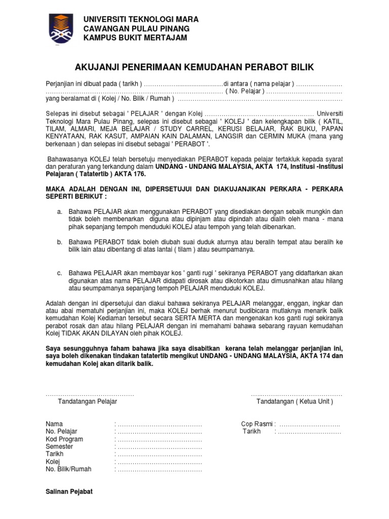 Aku Janji Pdf Akujanji Penerimaan Kemudahan Perabot Kolej Sri Pilah Uitm Kampus Kuala Pilah Beting Universiti Teknologi Mara Pk Uitm Hep O 01 Salinan Course Hero