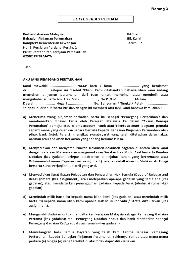 Borang 3 Letter Head Peguam