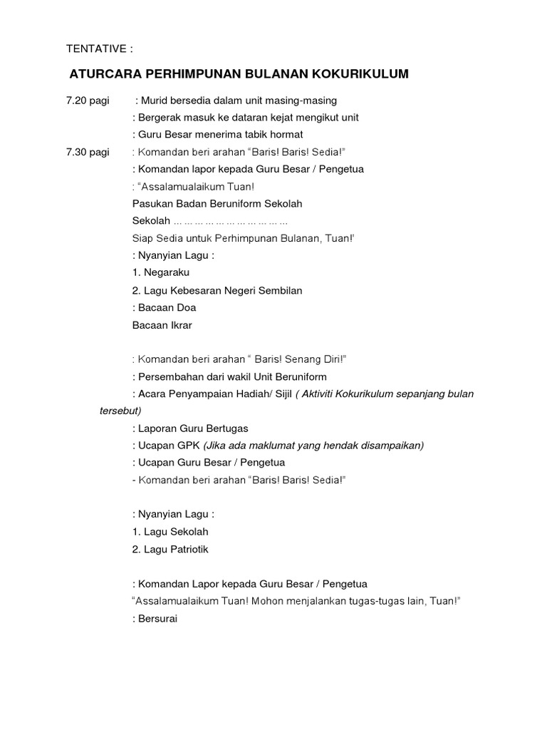 Teks Majlis Perhimpunan Kokurikulum Bulanan