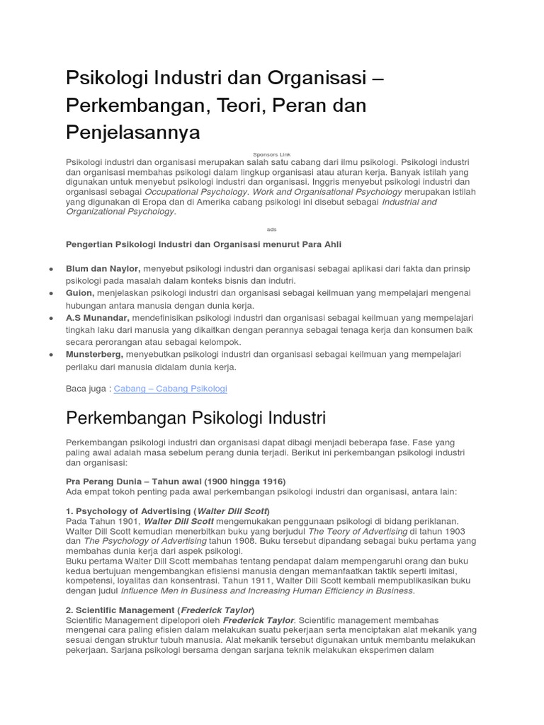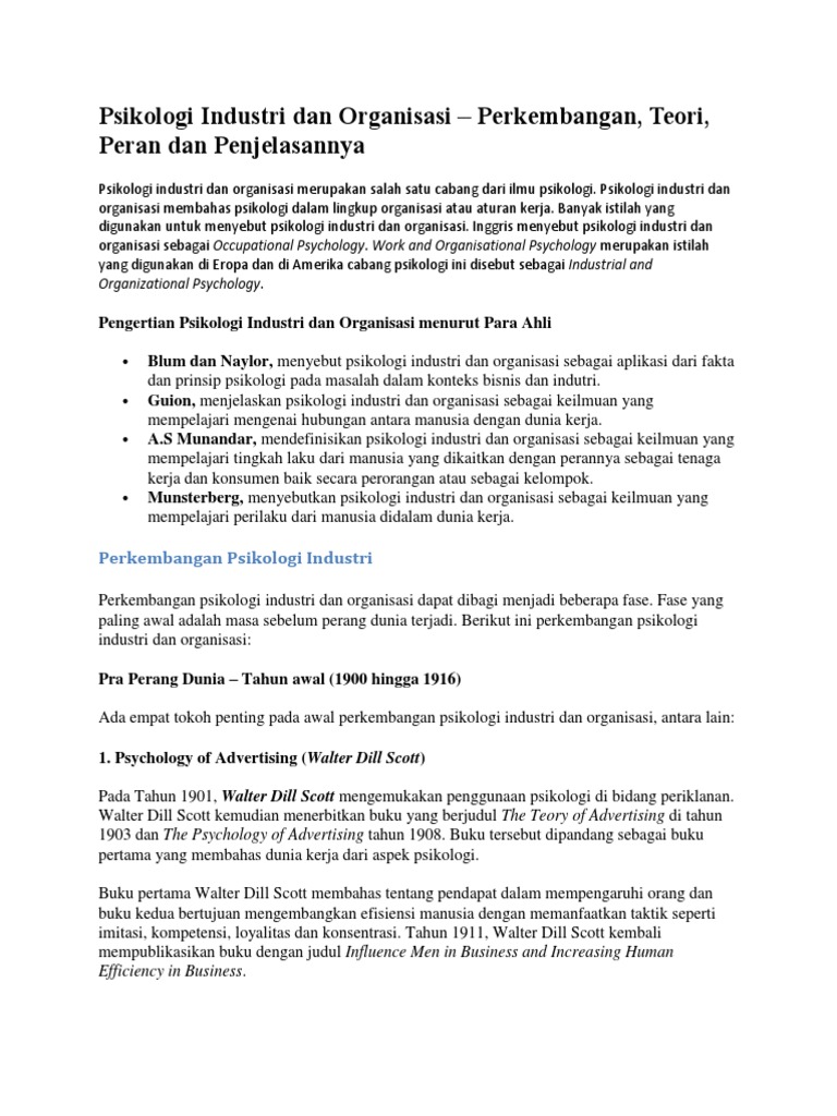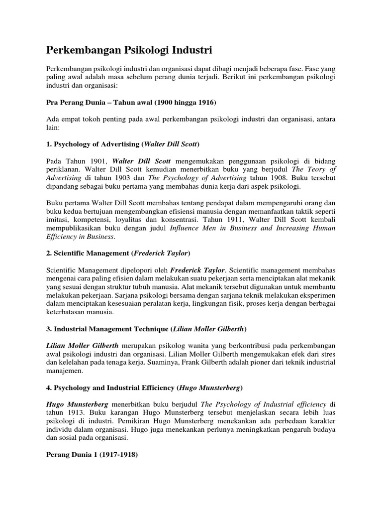 Sejarah Psikologi Industri Dan Organisasi By Cindy Puspita